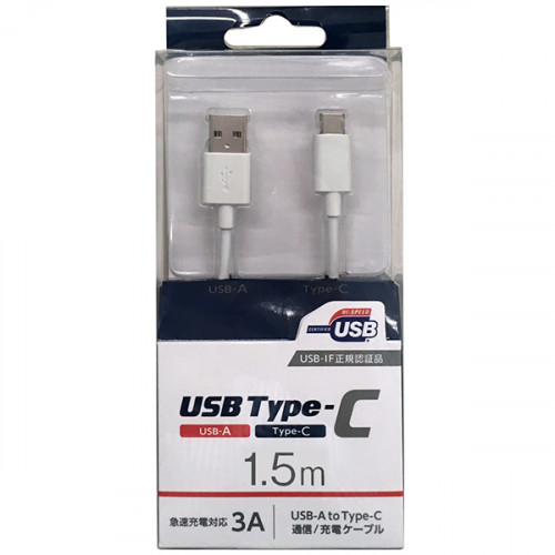 オズマ UD-3CS150W スマートフォン用USBケーブル A to C タイプ 認証品 1.5m ホワイト