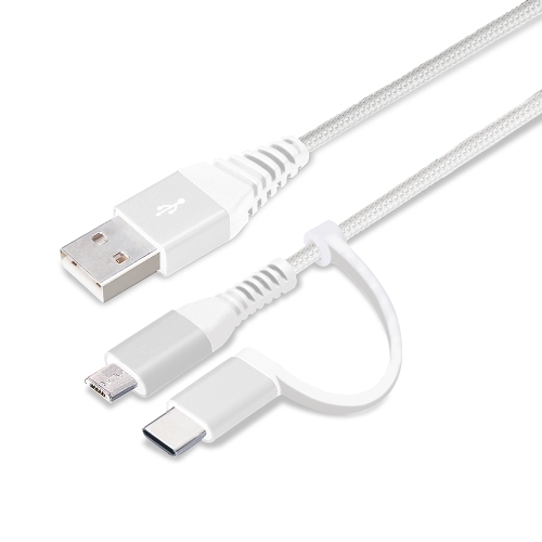 PGA PG-CMC10M02WH 変換コネクタ付き 2in1 USBタフケーブル(Type-Cµ USB) 1m ホワイト&シルバー