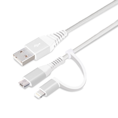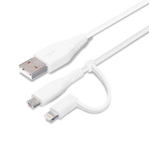 PGA PG-LMC01M02WH 変換コネクタ付き 2in1 USBタフケーブル(Lightningµ USB) 15cm ホワイト&シルバー