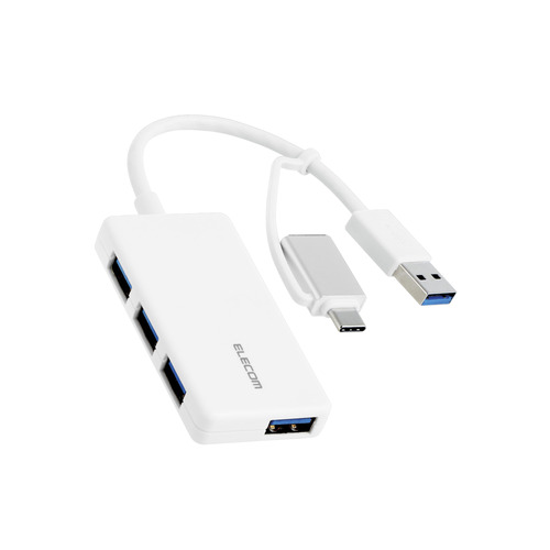エレコム U3H-CAK3005BWH USB Type-C変換アダプター付き USB 5Gbps超コンパクトハブ バスパワー Windows Mac他対応 ホワイト