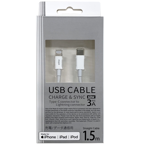 オズマ CDM-SL150W Type-C Lightningケーブル ホワイト