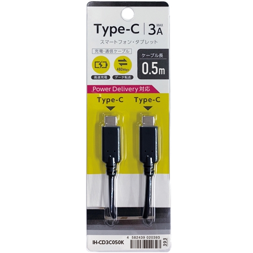 オズマ IH-CD3C050K Type-C端子ケーブル Type-Cモデル50cm  ブラック
