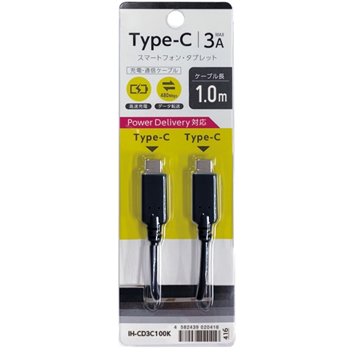 オズマ IH-CD3C100K Type-C端子ケーブル Type-Cモデル100cm ブラック