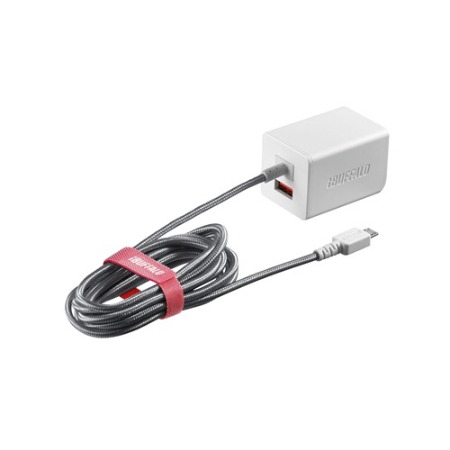 バッファロー BSMPA2401BC1TWH 2.4A出力 AC-USB急速充電器 microUSB急速ケーブル一体型タイプ 1.8m ホワイト