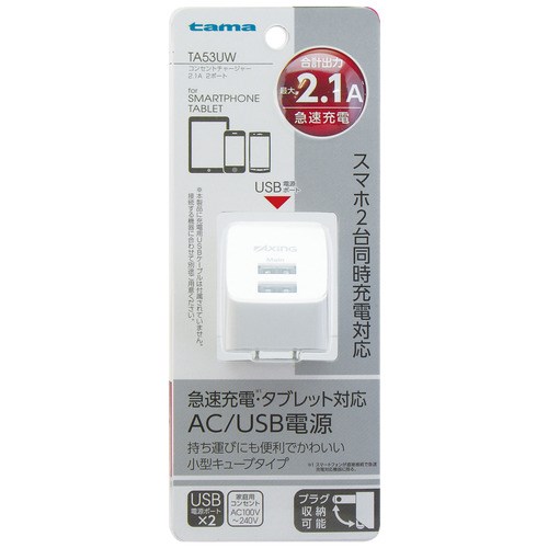 多摩電子工業 USB コンセントチャージャー 2.1A 2ポート WH TA53UW TA53UW