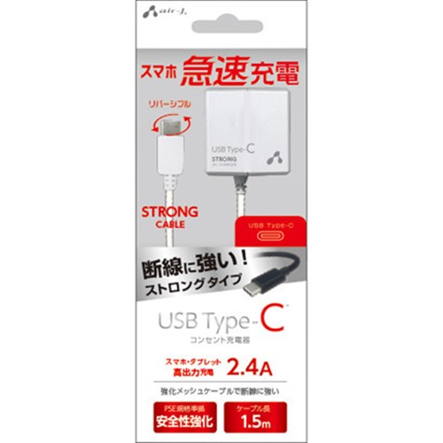 エアージェイ AKJ-CT24STG WH 高出力2.4A Type-C ストロングタイプ AC充電器 150cm ホワイト