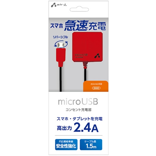 エアージェイ(AIR-J) AKJ-MT24-BKR AC充電器 1.5m スマートフォン用 両挿し 2.4A