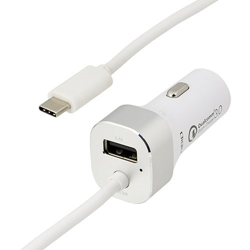 ナカバヤシ JYU-DCU01W Type-C/Quick Charge3.0 USBポート搭載 シガーチャージャー ホワイト