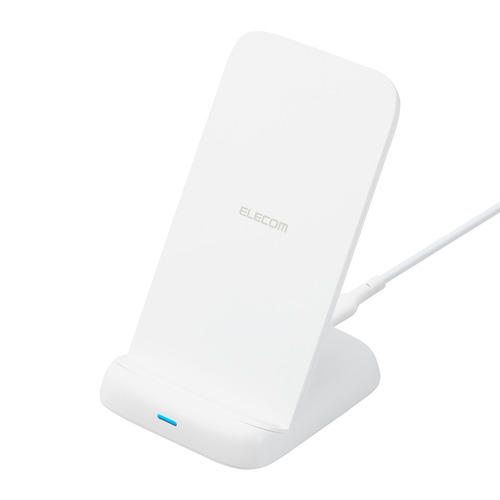エレコム W-QS08WH ワイヤレス充電器 Qi認証 5W/7.5W/10W 卓上 スタンド おくだけ充電 ホワイト WQS08WH