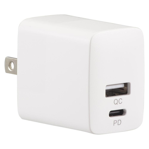 オーム電機 MAV-AQP20W-W AC充電器 PD対応Type-C+QC対応Type-A ホワイト
