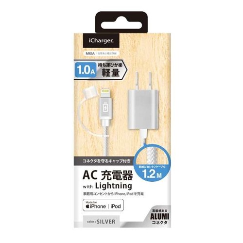 PGA PG-LAC10A22SV LightningコネクタAC充電器 タフケーブルタイプ 1A 1.2m シルバー