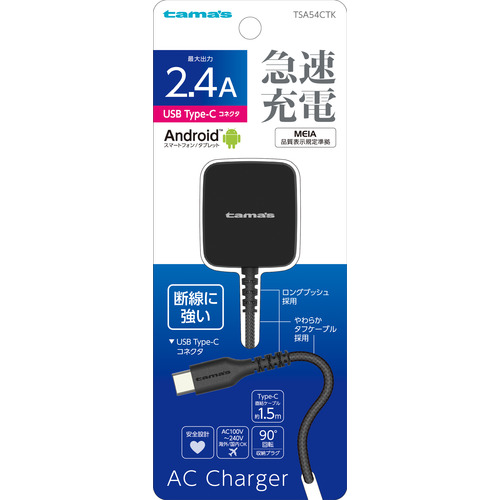 多摩電子工業 Type-C コンセントチャージャー2.4Aケーブル直結型 BK TSA54CK