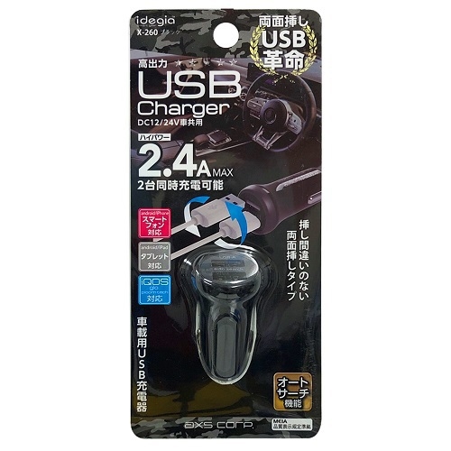 アークス X-260 DCチャージャー リバーシブル 2.4A ブラック