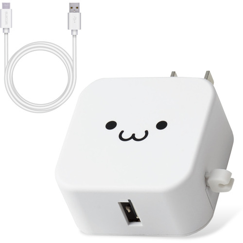 エレコム MPA-ACC22WF AC充電器 スマホ・タブレット用 2.4A出力 Type-C USB-C ケーブル一体型 1.5m USB-Aメス1ポート ホワイトフェイス