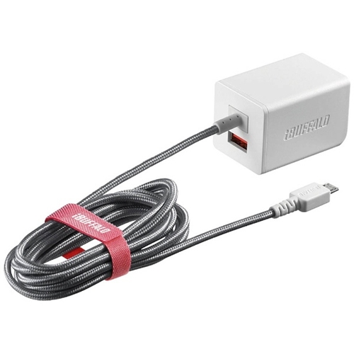 バッファロー BSMPA2401BC2WH 2.4A出力 AC-USB急速充電器 microUSB急速ケーブル一体型タイプ 1.8m ホワイト