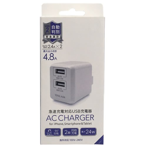 osma(オズマ) IH-ACU248ADW iPhoneスマートフォン用AC-USB充電器自動判別タイプ4.8A ホワイト