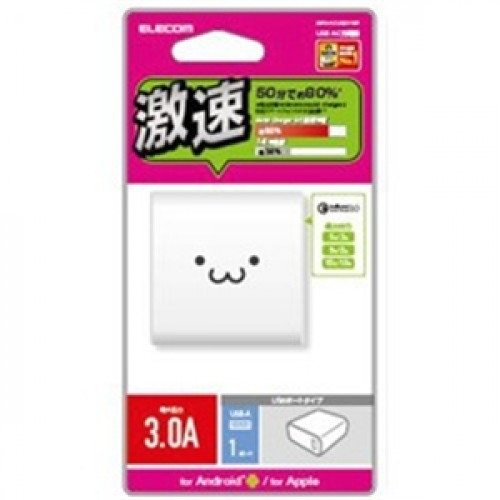 エレコム MPA-ACUQ01WF スマートフォン・タブレット用AC充電器 QuickCharge3.0対応 USB1ポート(ホワイトフェイス) ELECOM AC充電器(USBポート/ QC3.0)