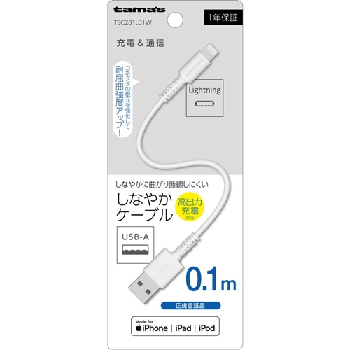 多摩電子工業 Lightning ケーブル 0.1m ホワイト TSC281L01W