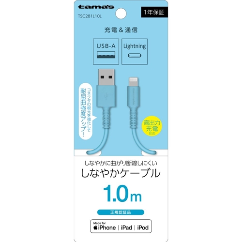 多摩電子工業 Lightning ケーブル 1.0m ブルー TSC281L10L