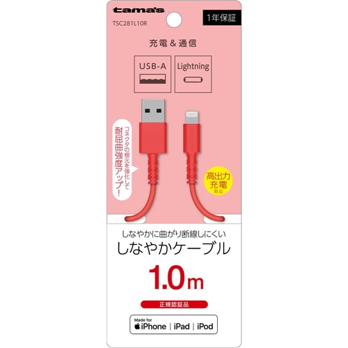 多摩電子工業 Lightning ケーブル 1.0m レッド TSC281L10R