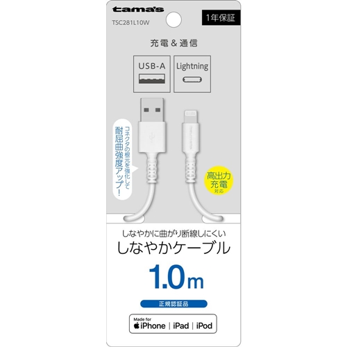 多摩電子工業 Lightning ケーブル 1.0m ホワイト TSC281L10W