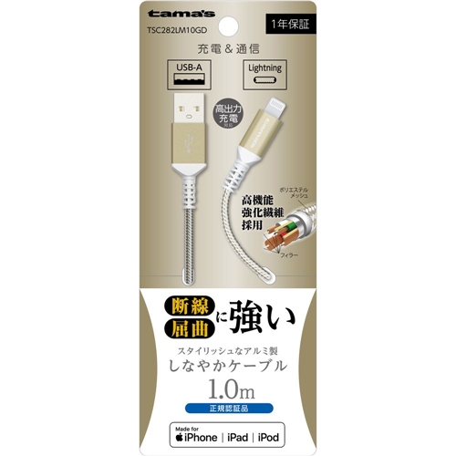 多摩電子工業 Lightning メタルケーブル 1.0m ゴールド TSC282LM10GD