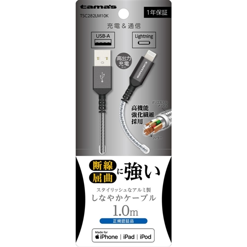 多摩電子工業 Lightning メタルケーブル 1.0m ブラック TSC282LM10K