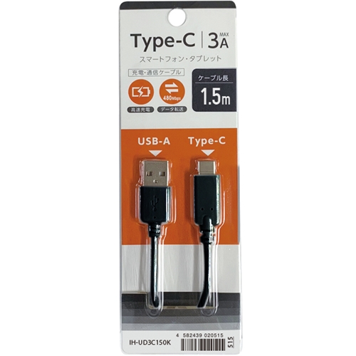 オズマ IH-UD3C150K Type-C端子ケーブル USB-Aモデル150cm ブラック