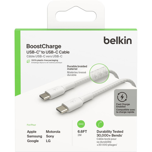 ベルキン BoostCharge USB-C to USB-C 編組ケーブル 2m ホワイト CAB004BT2MWH
