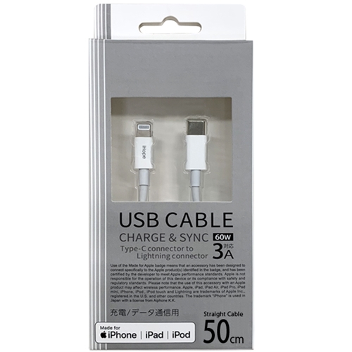 オズマ CDM-SL050W Type-C LightningUSBケーブル ホワイト