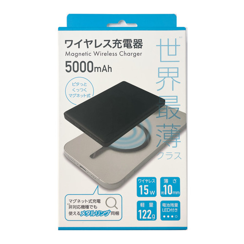 OSMA LCWM50-CCBK マグネット式 超薄型ワイヤレスモバイルバッテリー 5000mAh PD対応 1ポート ブラック