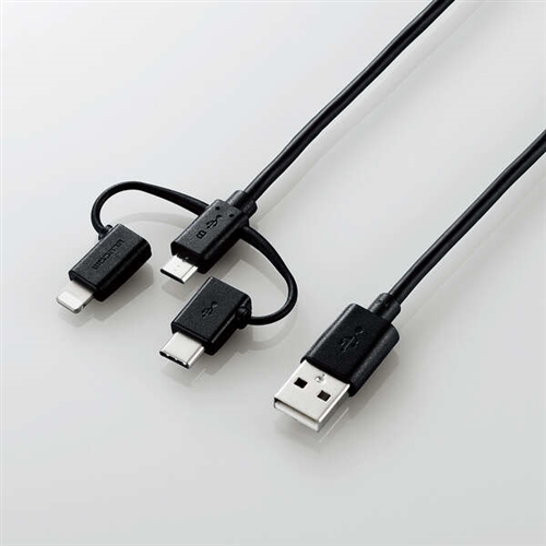 エレコム MPA-AMBLCAD12BK 3in1スマートフォン用USBケーブル 1.2m ブラック