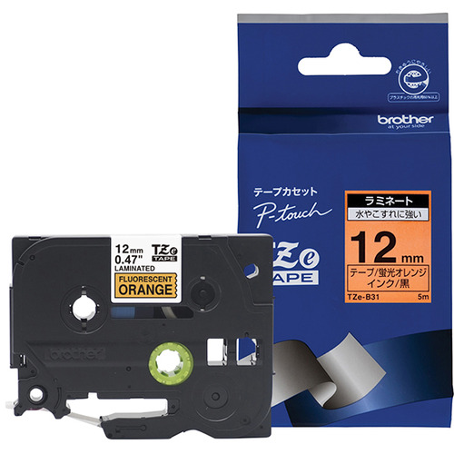 ブラザー TZe-B31 ラベルライターピータッチ用 蛍光カラーテープ 蛍光オレンジテープ 黒文字 幅12mm 長さ5m
