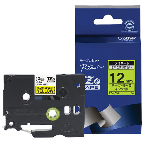 ブラザー TZe-C31 ラベルライターピータッチ用 蛍光カラーテープ 蛍光黄テープ 黒文字 幅12mm 長さ5m