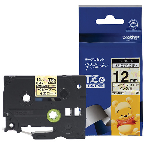 ブラザー TZe-DY31 ラベルライターピータッチ用 ラミネートテープ キャラクタータイプ プーさん イエローテープ 黒文字 幅12mm 長さ5m