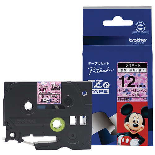 ブラザー TZe-DP31 ラベルライターピータッチ用 ラミネートテープ キャラクタータイプ ミッキー&ミニー ピンクテープ 黒文字 幅12mm 長さ5m