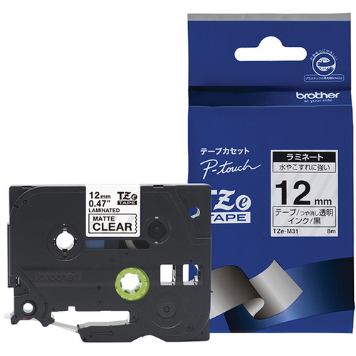 ブラザー TZe-M31 ラベルライターピータッチ用 マットテープ 透明テープ(つや消し) 黒文字 幅12mm 長さ8m