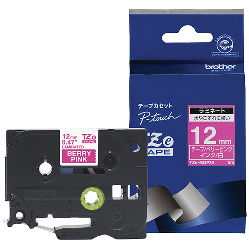 ブラザー TZe-MQP35 ラベルライターピータッチ用 おしゃれテープ ベリーピンクテープ(つや消し) 白文字 幅12mm 長さ5m