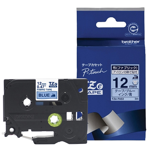 ブラザー TZe-FA53 ラベルライターピータッチ用 布テープ(ファブリックテープ) ブルーテープ 青文字 幅12mm 長さ3m
