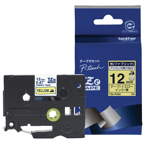ブラザー TZe-FA63 ラベルライターピータッチ用 布テープ(ファブリックテープ) イエローテープ 青文字 幅12mm 長さ3m