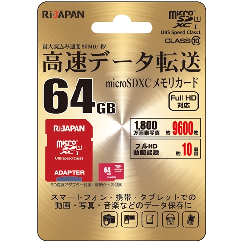 RIJAPAN RIJ-MSX064G10U3 microSD 64GB レッド