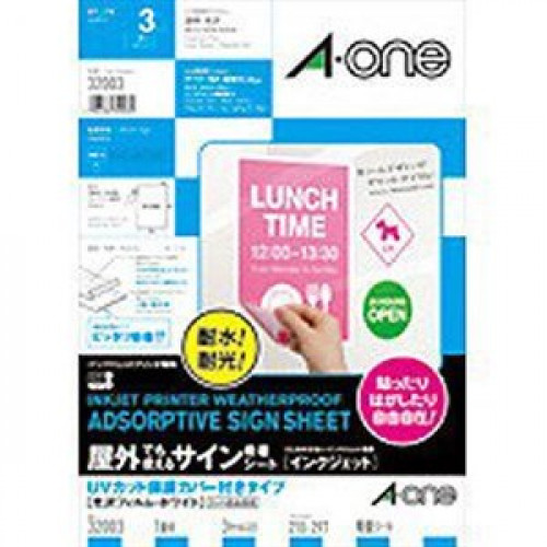 エーワン 32003 屋外でも使えるサイン吸着シート インクジェット UVカット保護カバー付きタイプ 光沢フィルム・ホワイト