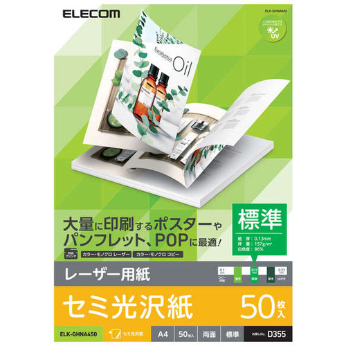 エレコム ELK-GHNA450 レーザープリンタ用 両面セミ光沢紙 標準 A4サイズ 50枚入 ELKGHNA450