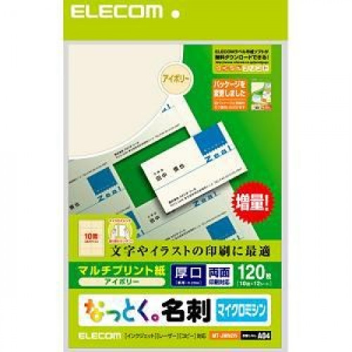 エレコム MT-JMN2WN なっとく名刺 マルチプリント用紙 厚口(A4サイズ 10面・12枚・ホワイト)