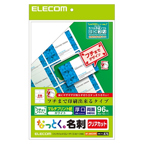 エレコム MT-JMKE2WN 名刺用紙(クリアカット) 96枚(8面×12シート)