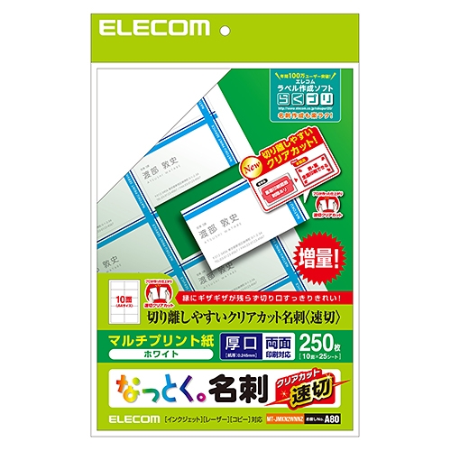 エレコム MT-JMKN2WNNZ 名刺用紙(速切クリアカット・ホワイト) 250枚(10面×25シート)
