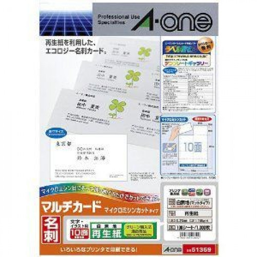 エーワン 51369 マルチカード 各種プリンタ兼用紙 再生紙 A4判 10面 名刺サイズ 100シート(1000枚)